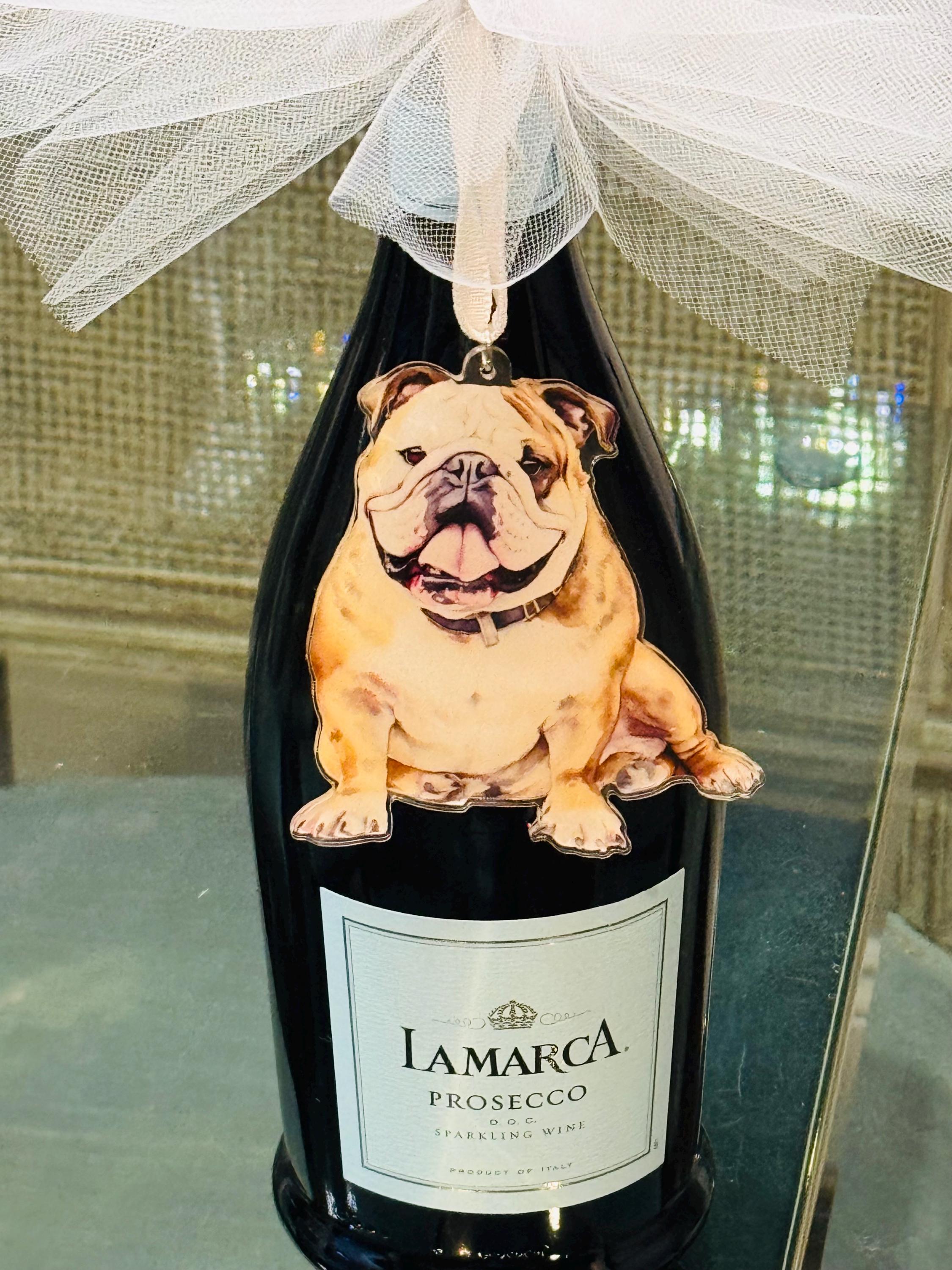 This adorable Bulldog design is precious on a celebratory bottle or hanging on your tree but would also be a wonderful ornament for an ornament swap or hostess gift!